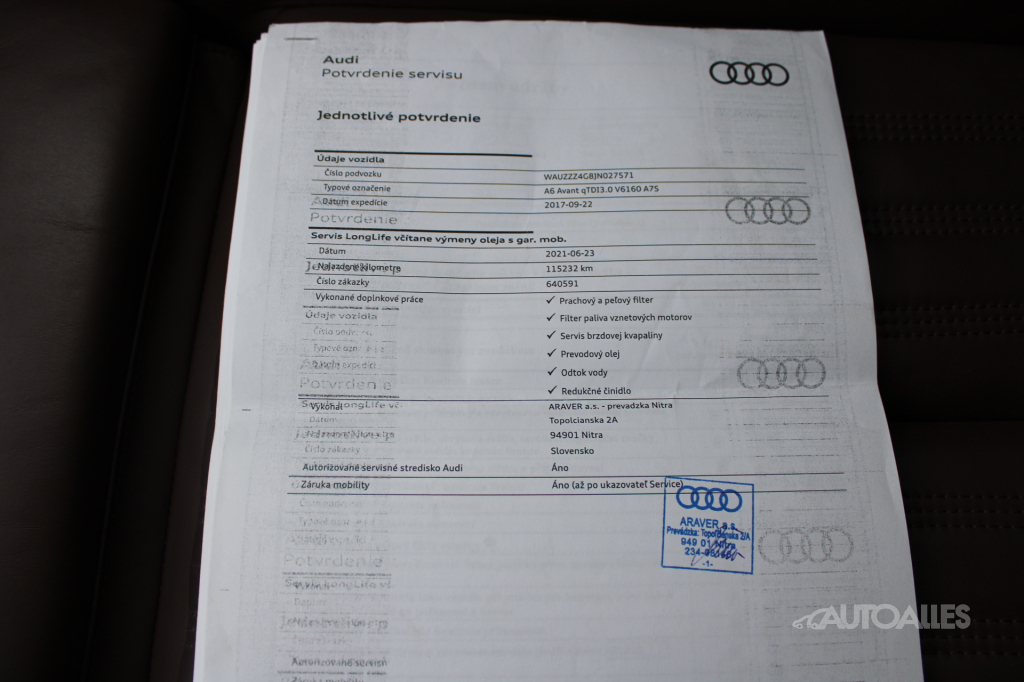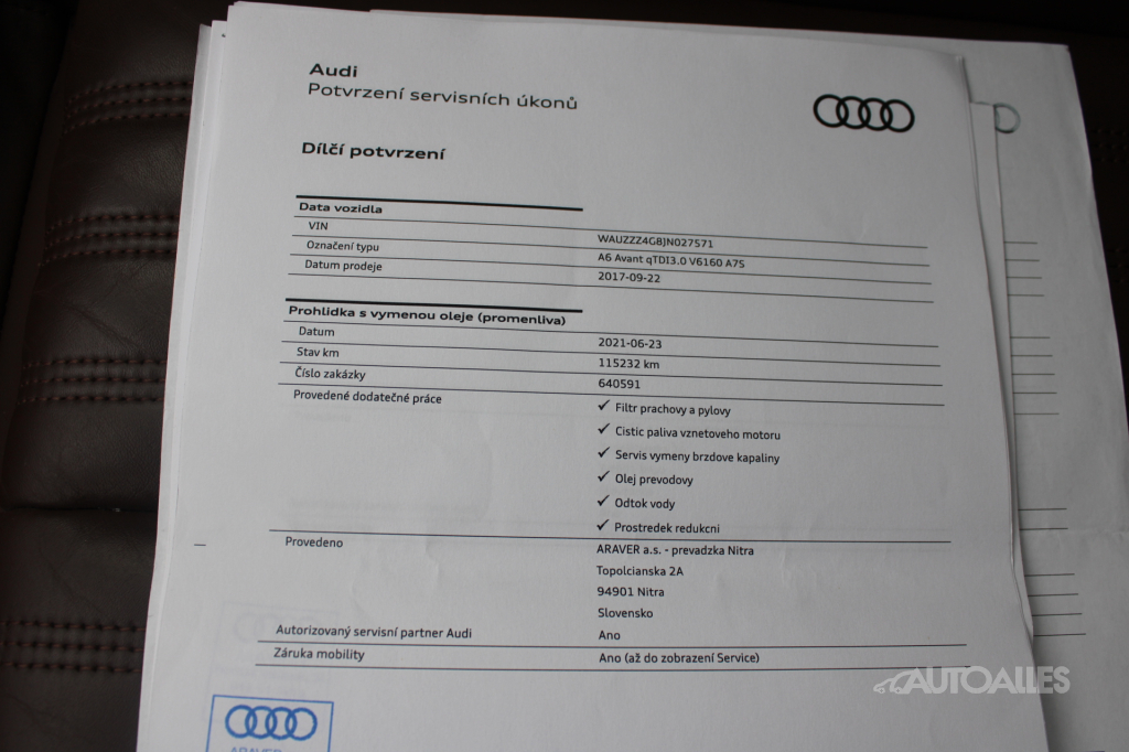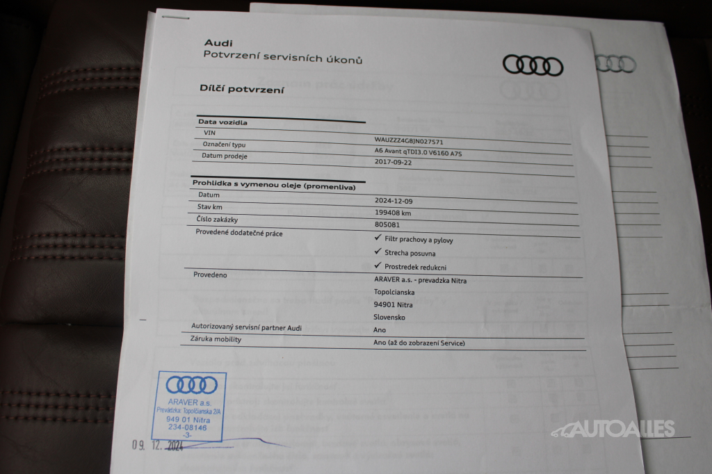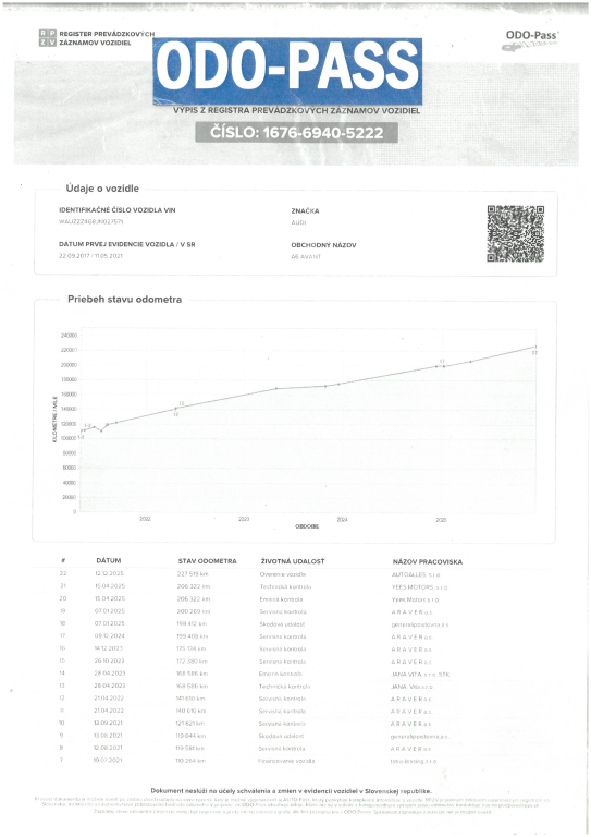 Vozidlo dovezené zo zahraničia v roku 2021 / Nemecko. Skelet vozidla je nehavarovaný. Ku vozidlu je vystavený výpis zo štátneho Registra prevádzkových záznamov vozidiel - ODO-PASS, ktorý zobrazuje históriu najazdených kilometrov vozidla. Originálne najazdené kilometre si môžete overiť aj u ktoréhokoľvek oficiálneho predajcu Audi, k dispozícií elektronická servisná kniha. Vozidlo technicky aj opticky v TOP stave, karoséria vozidla bez škrabancov a preliačenín, lak má krásny lesk, bez viditeľnej korózie. Interiér po nefajčiarovi, sedačky nevysedné, koža vo výbornom stave. Automatická prevodovka radí hladko bez trhania. Pri jazde nič nebúcha ani nevibruje, podvozok a nápravy bez problémov. Pohon 4X4 plne funkčný, možnosť vyskúšať na skúšobnej jazde. Motor má pekný kultivovaný chod. Vozidlo disponuje vysokou výbavou. Obuté zimné pneumatiky na hliníkových diskoch 245/45 R18. Posledná servisná prehliadka 12/2024 pri 199 408 km - výmena oleja a filtrov. Ku vozidlu je 2 x kľúč. AUTOALLES: najväčší slovenský autobazár, už od roku 1990, doživotná záruka na pôvod vozidla s garanciou vrátenia peňazí. Tešíme sa na vašu návštevu.